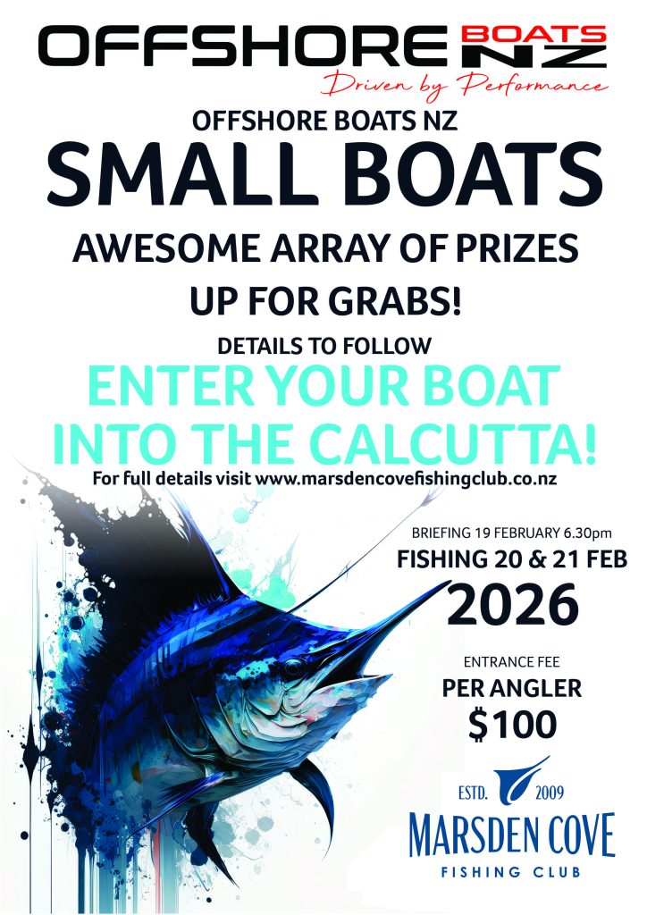Marsden Cove Fishing Club and Offshore Boats NZ are super excited to hold another amazing OFFSHORE BOATS NZ SMALL BOATS COMPETITION 2026!