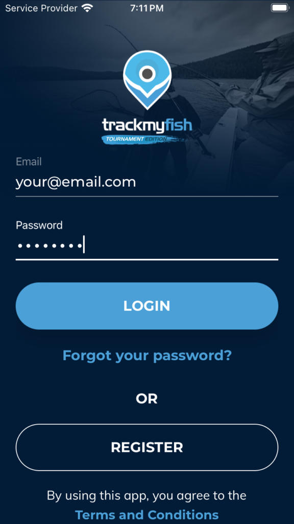 Have you ever used any Track My Fish Apps? If yes, then you will use your email address that you registered and password. If you have forgotten your password click the forgot your password button. If you are brand new to using any of the Track My Fish apps, then you can create an account in whichever app you downloaded and your login will work for any of the events on the track my fish network.